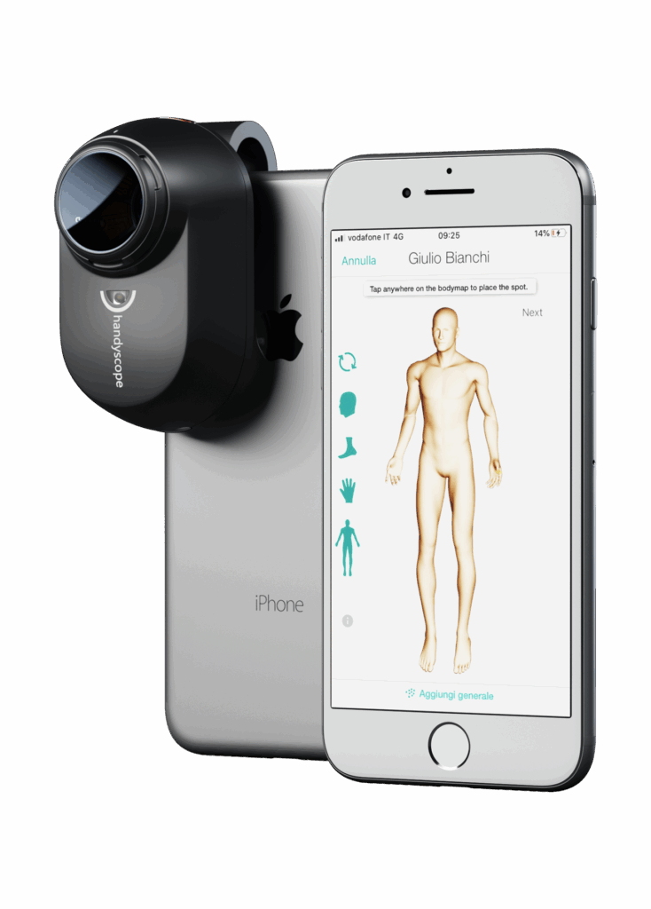 Il dispositivo medico che permette di analizzare le patologie cutanee tramite smartphone o tablet, rendendo la Teledermatologia accessibile in qualsiasi contesto operativo.